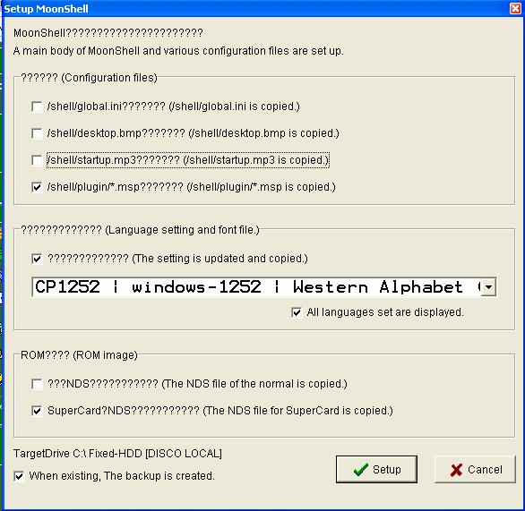 Bajamos la versión del Moonshell con encodeador de videos (DPGtools), descomprimimos en nuestra computadora y le damos al Setup. Allí, tras elegir entre el idioma japonés o inglés, nos preguntará donde queremos instalar el programa. Elegimos la unidad que representa nuestra tarjeta de memoria.