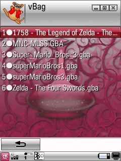 Antes de pasar a describir el tutorial para el emulador vBag , hay que destacar que el vBag no precisa formatos extraños, los juegos se cargan directamente en formato .gba y permite guardar en 5 ranuras diferentes dentro del emulador. También hay posibilidad de guardar la partida en el juego, pero es un poco menos seguro.