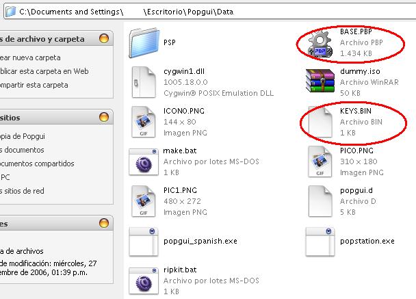De ese juego tenemos que sacar los archivos “Eboot.PBP” y “Keys.BIN”, y ponerlos en la carpeta donde instalamos el Popstation.