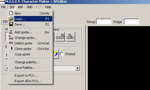 Ahora, seleccionamos la ruta donde se encuentra nuestro char y su sff correspondiente. Una vez abierto vamos a la casilla “AIR” y elegimos la opción “Load Air”.