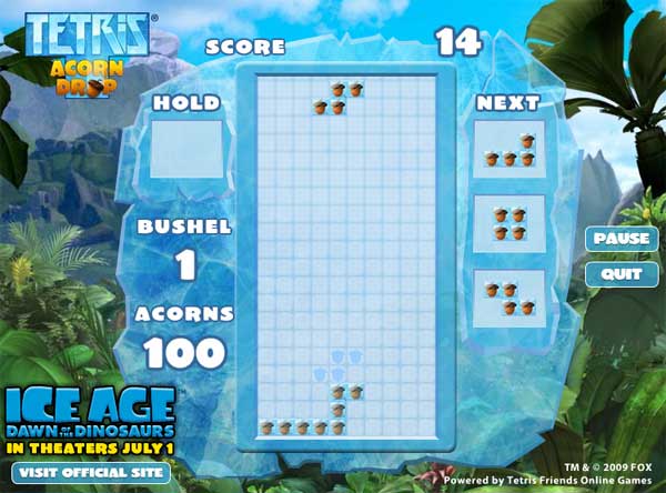 También existe un tetris de la Era de Hielo, al que podemos acceder desde LR-Visual y que transforma las clásicas figuras en nueces y con fondos de la película. Mucha imaginación y buen uso de los gráficos y temas de La Era de Hielo 3 para que los fanáticos puedan disfrutar.