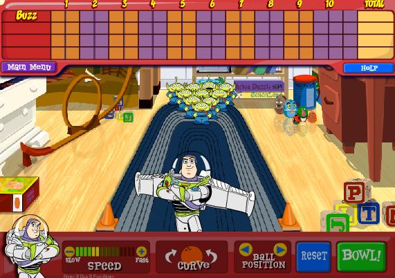 El primero es Toy Story Bowl o Rama, diseñado con mucha simpatía en Flash y con la posibilidad de controlar a Buzz, Rex, Hamm o Woody en una competencia de bolos. Controlarás diferentes características desde la velocidad y la curva de la bola, hasta la fuerza y la posición, pudiendo demostrar tus habilidades en los bolos, aunque los pinos son los pequeños extraterrestres verdes del universo Toy Story.