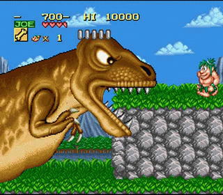 Si prefieres la acción y las plataformas, tienes que probar el primer juego de Joe & Mac, lanzado originalmente en 1991.
