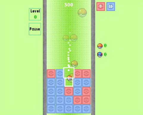 Primero tenemos un sencillo juego de puzzles llamado Pokébolas. Lo que tenemos que hacer es guiar a las pokébolas de diferentes colores hacia los bloques iguales, para así hacerlos desaparecer.