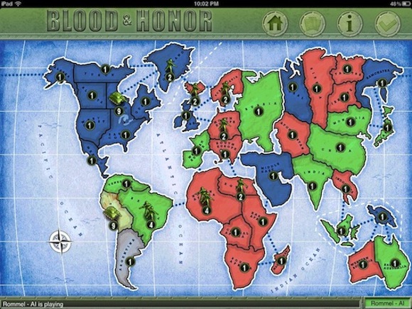 Empezamos con Blood & Honor, un clon de Risk (o TEG), que combina estrategia por turnos y lanzamiento de dados. Conquista países utilizando tus tropas y conviértete en el jugador más poderoso administrado bien tus puntos y aprovechando una cuota de suerte.