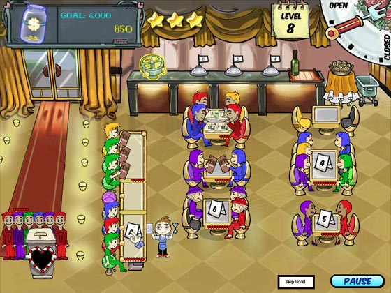 Tienes que ser una moza veloz para llevar a sus clientes a la mesa, atenderlos, llevar su pedido, limpiar y cobrar para recibir buenas propinas. Es una aventura de gestión de tiempo y actividades, donde la comida tiene un papel predominante.