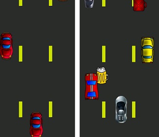 Tu objetivo será el de manejar un coche, evitando todos los otros coches para no chocar y, además, tendrás que evitar las bebidas alcohólicas que irán apareciendo en el camino. Si llegas a agarrar una cerveza, la visión se te nublará y puedes llegar a tener un accidente. También, se te indicará el porcentaje de alcohol que tienes, en la barra que aparece a la derecha.