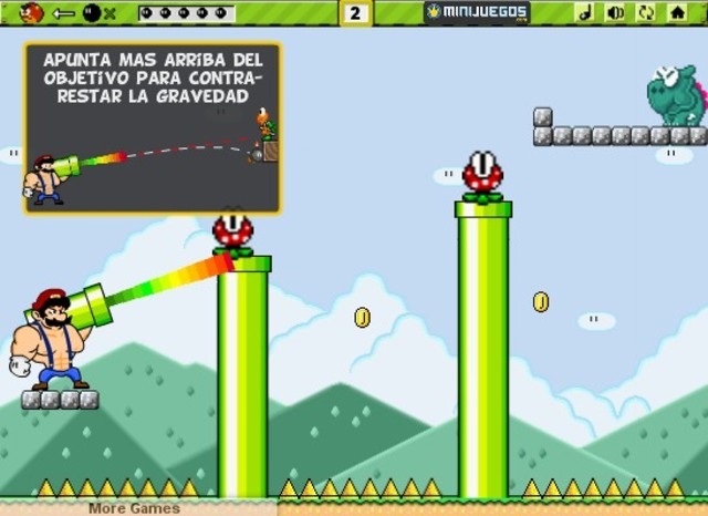 Nuestro objetivo en este juego gratis Mario, es comer un hongo violeta y transformar las clásicas cañerías por las que Mario se mueve, en bazookas para dispararle a los enemigos.
