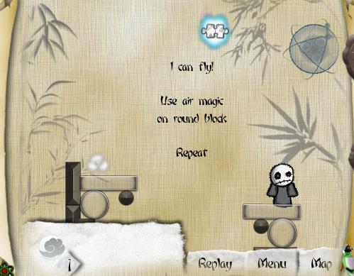 Cada escenario está compuesto por piezas que desaparecen cuando las tocamos con el ratón, pero la idea es aprovechar las leyes de la física para que nuestro fantasma pase a través del vórtice y al siguiente nivel.