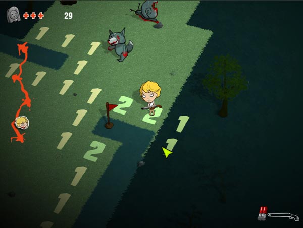 La principal diferencia con el Buscaminas es que en Zombie Minesweeper agregamos un favor de acción, pudiendo recoger armas y bombas para destruir a los animales zombie que intentan comernos.