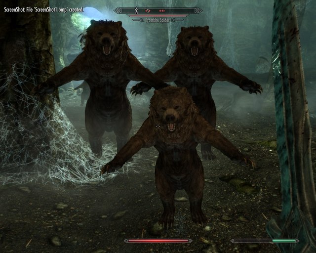 Ten cuidado porque los osos siguen siendo arañas en realidad, así que hay que atacar a la parte inferior de su cuerpo para matarlos y no tienen animación de muerte así que quedan estáticos en la pantalla.