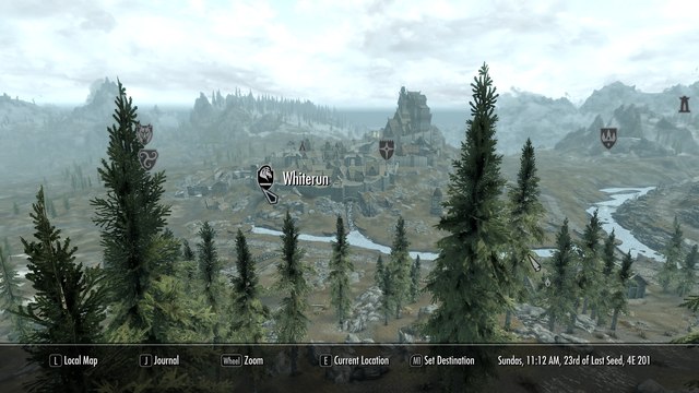 Skyrim Street View aplica una estética similar al sistema de navegación por mapas Street View y permite que hagamos zoom sobre las distintas zonas del mapa, pudiendo ver puntualmente la región de nuestro hogar, seguir el curso del río o alejarnos y acercanos a gusto de los edificios más importantes que vamos conociendo en la aventura.