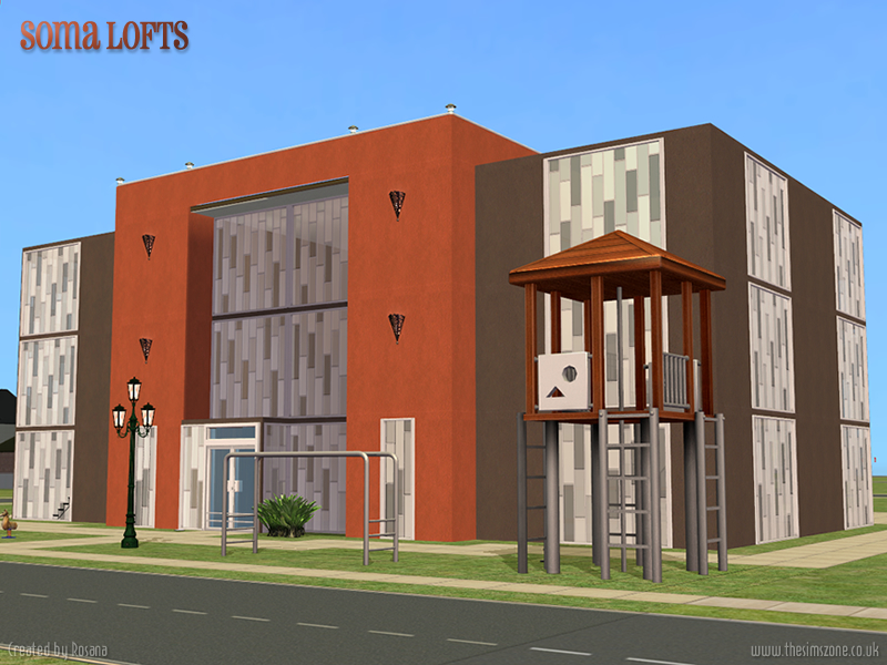 Se trata de un edificio moderno, que combina el naranja y el blanco como colores predominantes. El contenido se puede agregar a la expansión Los Sims 2 Apartamentos, ya que se trata de un edificio en donde pueden vivir hasta 7 familias.