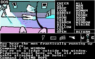 Borrowed Time es una aventura gráfica de vieja escuela, apoyada principalmente en el texto y en las imágenes de escenarios y personajes. Hay que prestar mucha atención para descubrir pistas que nos guíen a resolver la muerte de nuestra ex-esposa, en un juego gratis Abandonware que se vuelve muy complicado y requiere mucha atención.