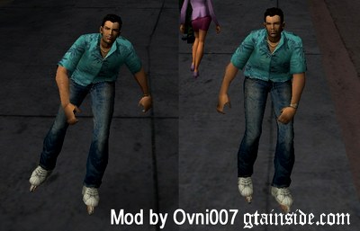 El GTA Roller Mod es bastante sencillo de explicar. Reemplaza la versión de peatón de nuestro protagonista, por unos patines para mayor velocidad y estilo al recorrer a pie la ciudad de Vice City.