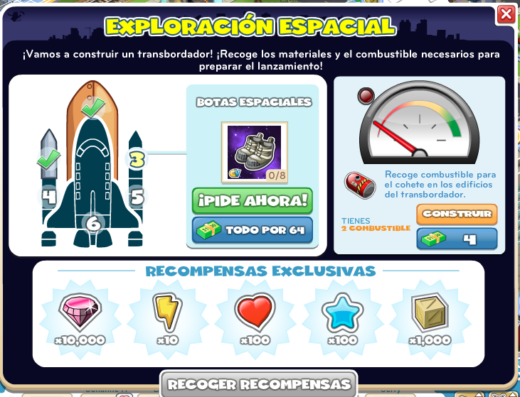 Para conquistar el espacio sideral en CityVille debemos mejorar el transbordador, y para eso hay que conseguir diferentes materiales e ir cumpliendo misiones al estilo típico de esta saga de juegos de Facebook.