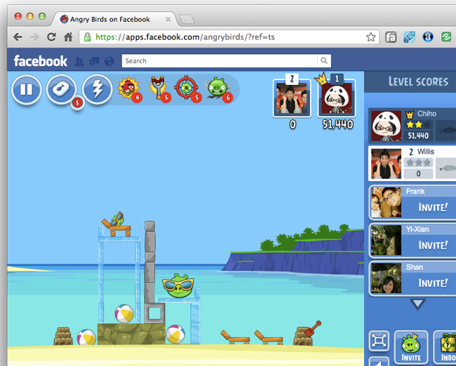 El famoso juego de habilidad y puzzles Angry Birds de Rovio, se fue adaptando a distintas plataformas, y la red social Facebook aprovechó al máximo la mecánica de juego casual y hoy figura entre las aplicaciones más visitadas.