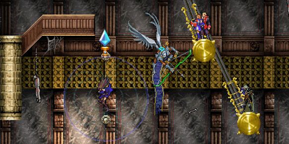 Los héroes seleccionables están sacados de diferentes entregas de Castlevania, Soma Cruz y Alucard entre otros, y podemos elegir variaciones de colores para aquellos que elijan el mismo.