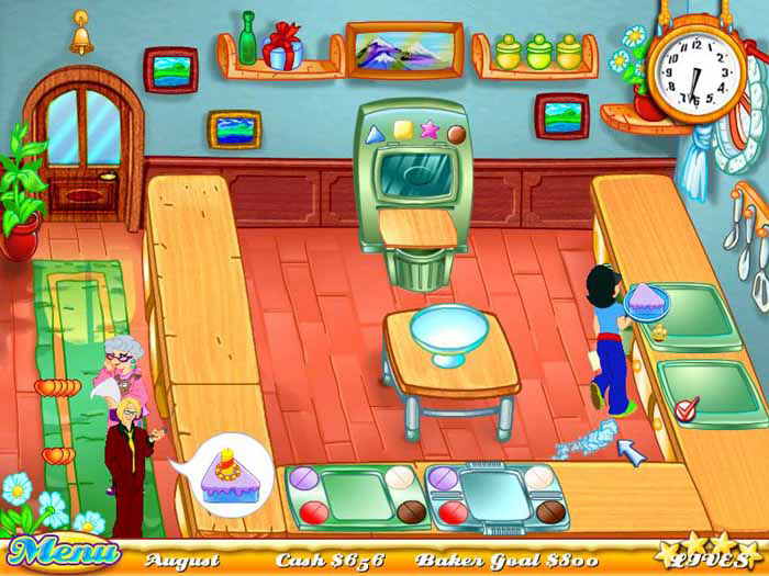 La mecánica es simple, pero repleta de opciones. Elige cuidadosamente la forma de los pasteles según los pedidos, pon la cobertura y vende las mejores tortas para ganar dinero.